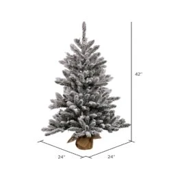 Vickerman 3.5-ft Burlap Base Pine Full Right Side Up Flocked White Artificial Christmas Tree