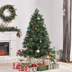 HomCom 5-ft Leg Base Full Rightside-Up Green Artificial Christmas Tree