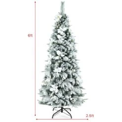 Costway 6-ft Pre-lit Flat Base Slim Green Artificial Christmas Tree With 250 Warm White LED Lights