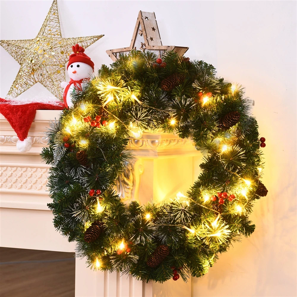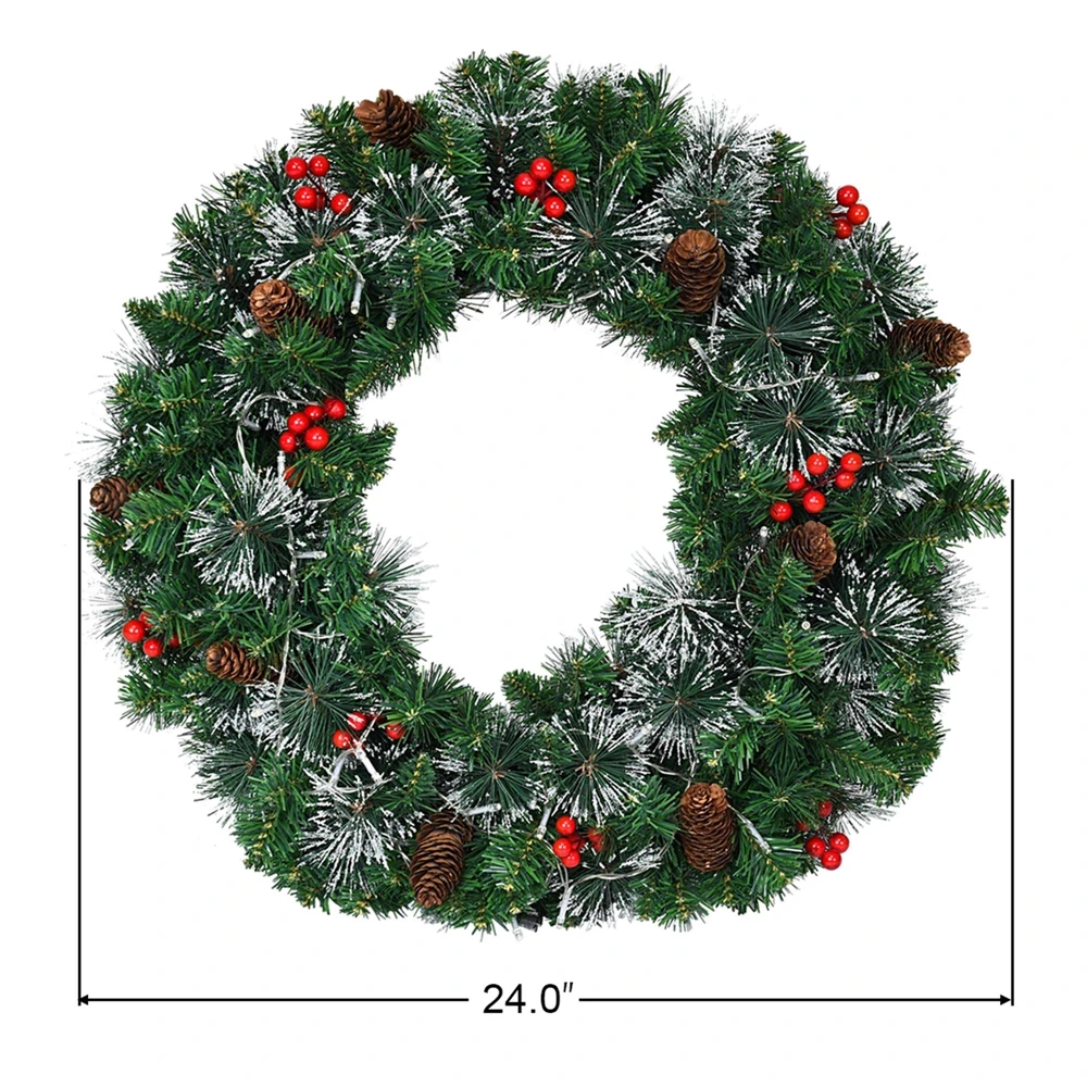 Costway 24-in Pre-Lit Indoor/Outdoor Battery-Operated Green Berry Artificial Christmas Wreath With Warm White LED