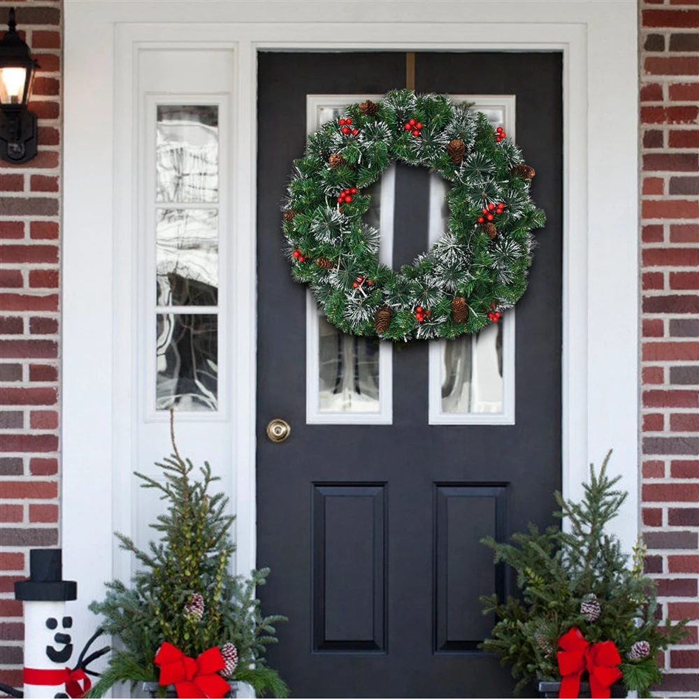 - Decorated with pine cones, red berries and bristle tips to offer a touch of nature