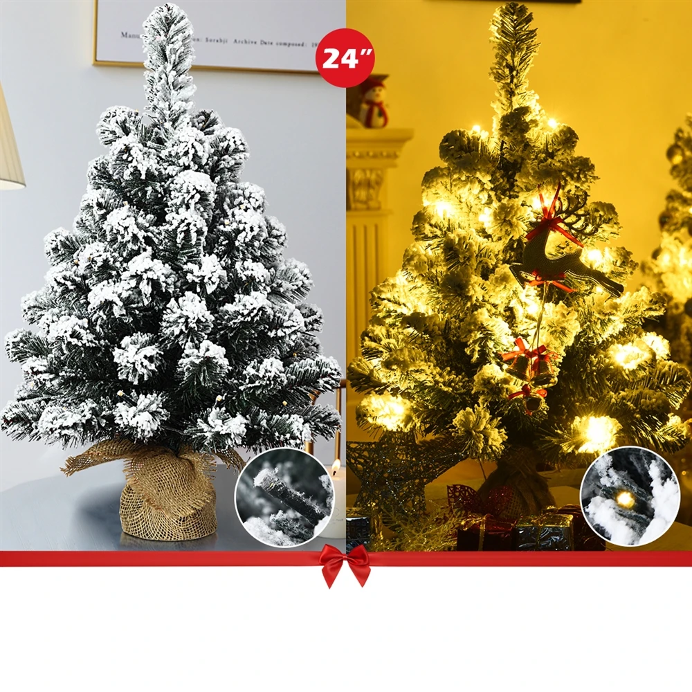Costway 24-in Pre-Lit Snow Flocked Tabletop Christmas Tree Decor With 30 LED Lights And Timer