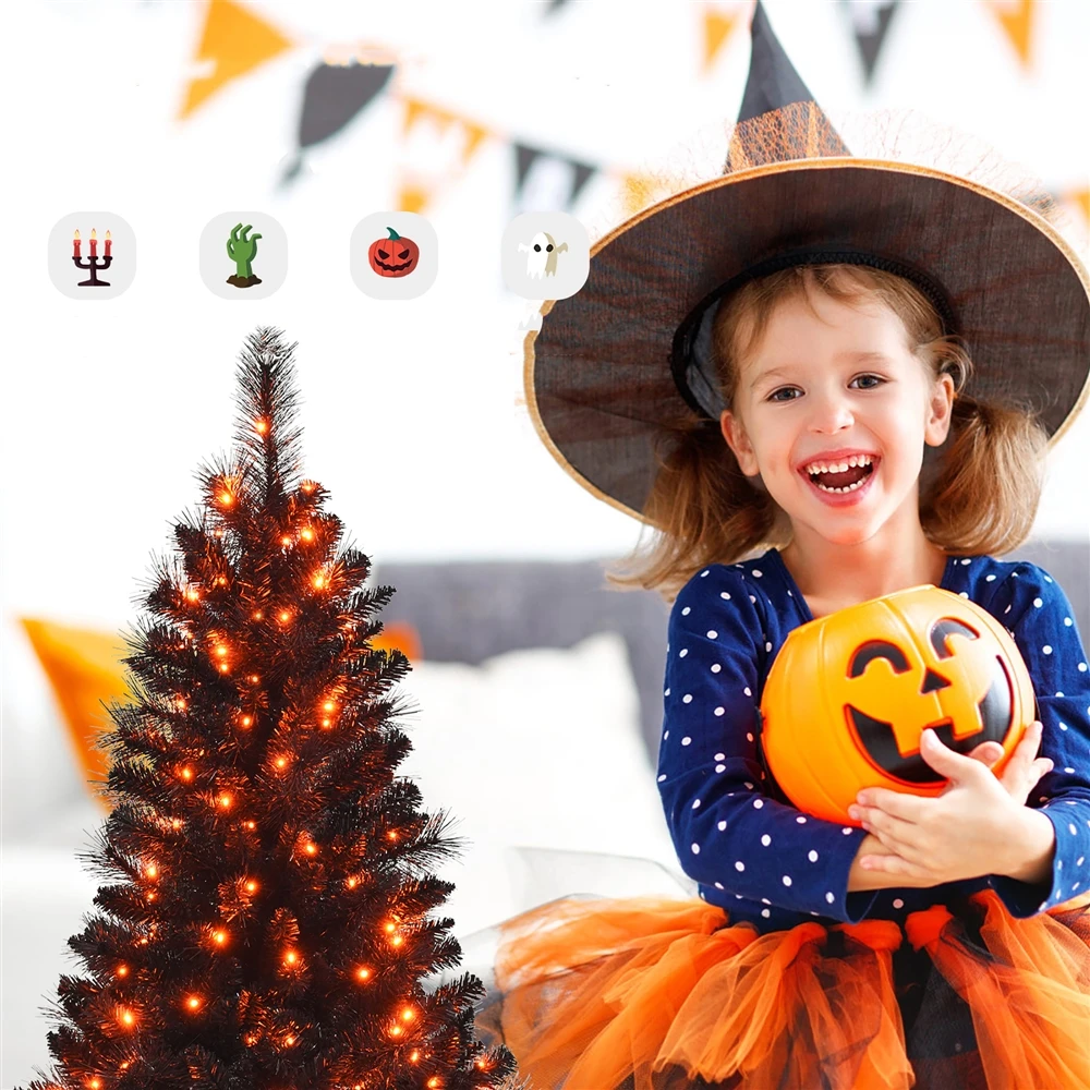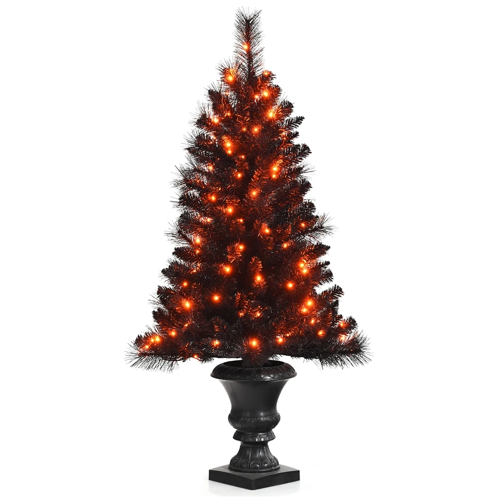 Costway 4-ft Pre-Lit Black Christmas Entrances Tree Potted Xmas With 100 Orange LED Lights