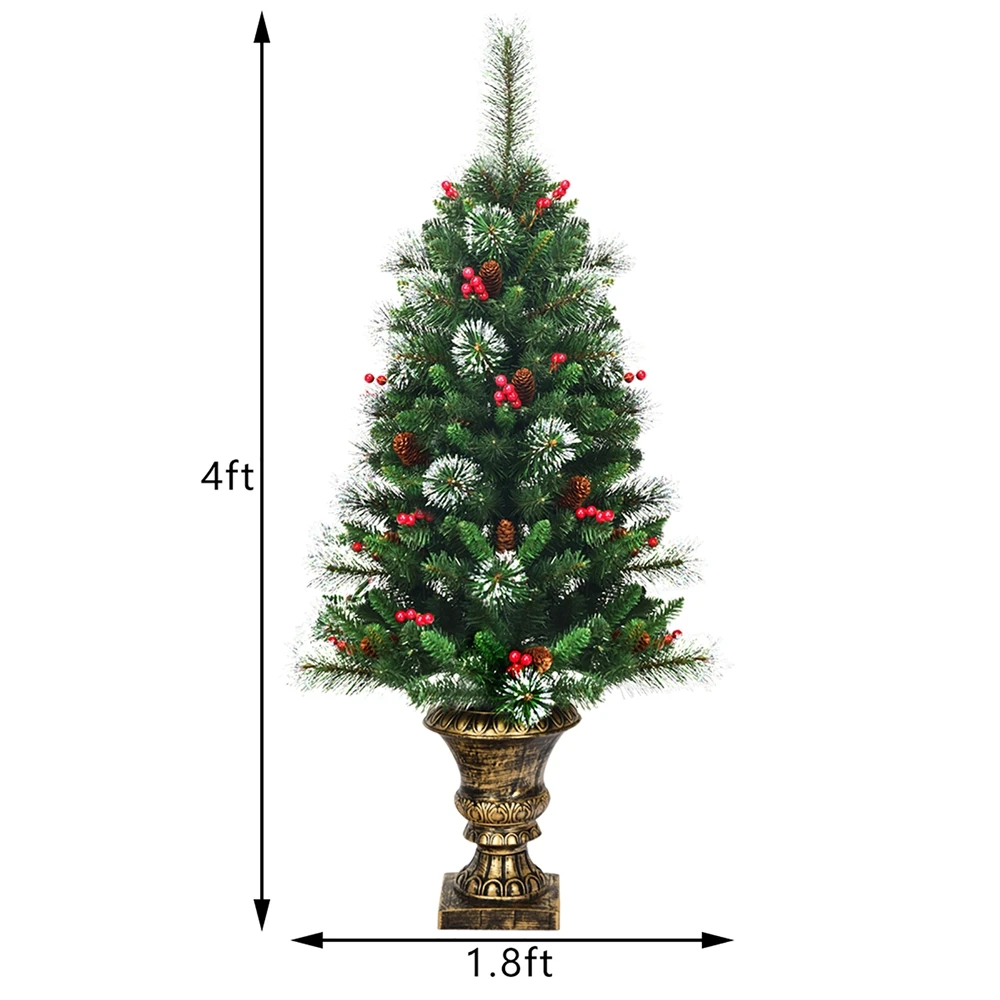 Costway 4 -ft Snowy Christmas Entrance Tree With Pine Cones Red Berries And Glitter Branches