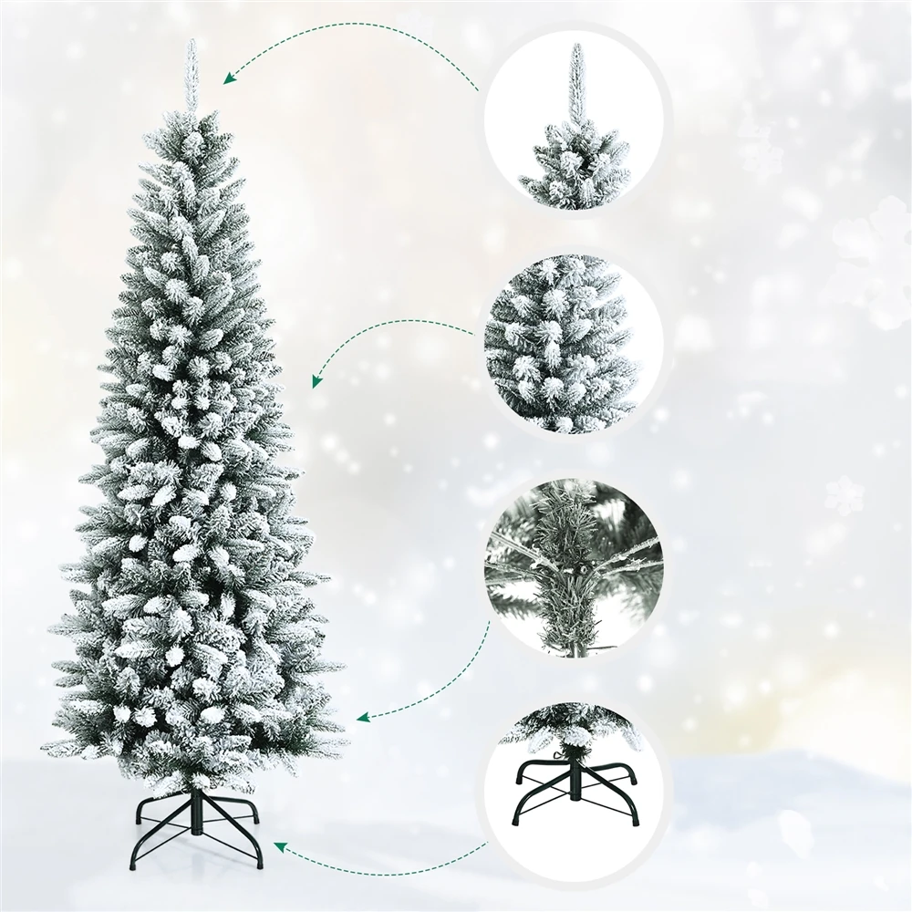HomCom 6-ft Leg Base Pencil Pine White Artificial Christmas Tree