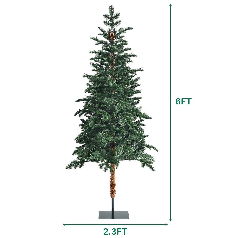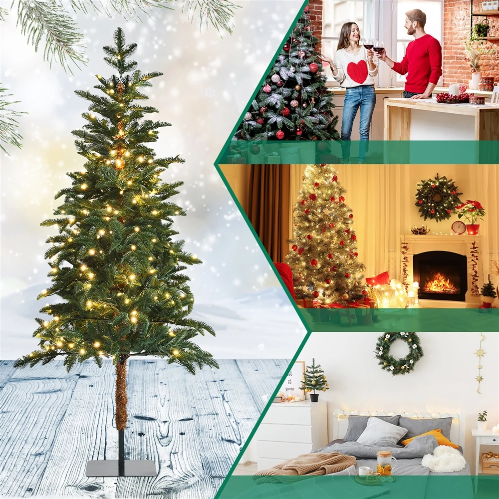 Costway 6-ft Pre-lit Flat Base Slim Green Artificial Christmas Tree With 250 Warm White LED Lights