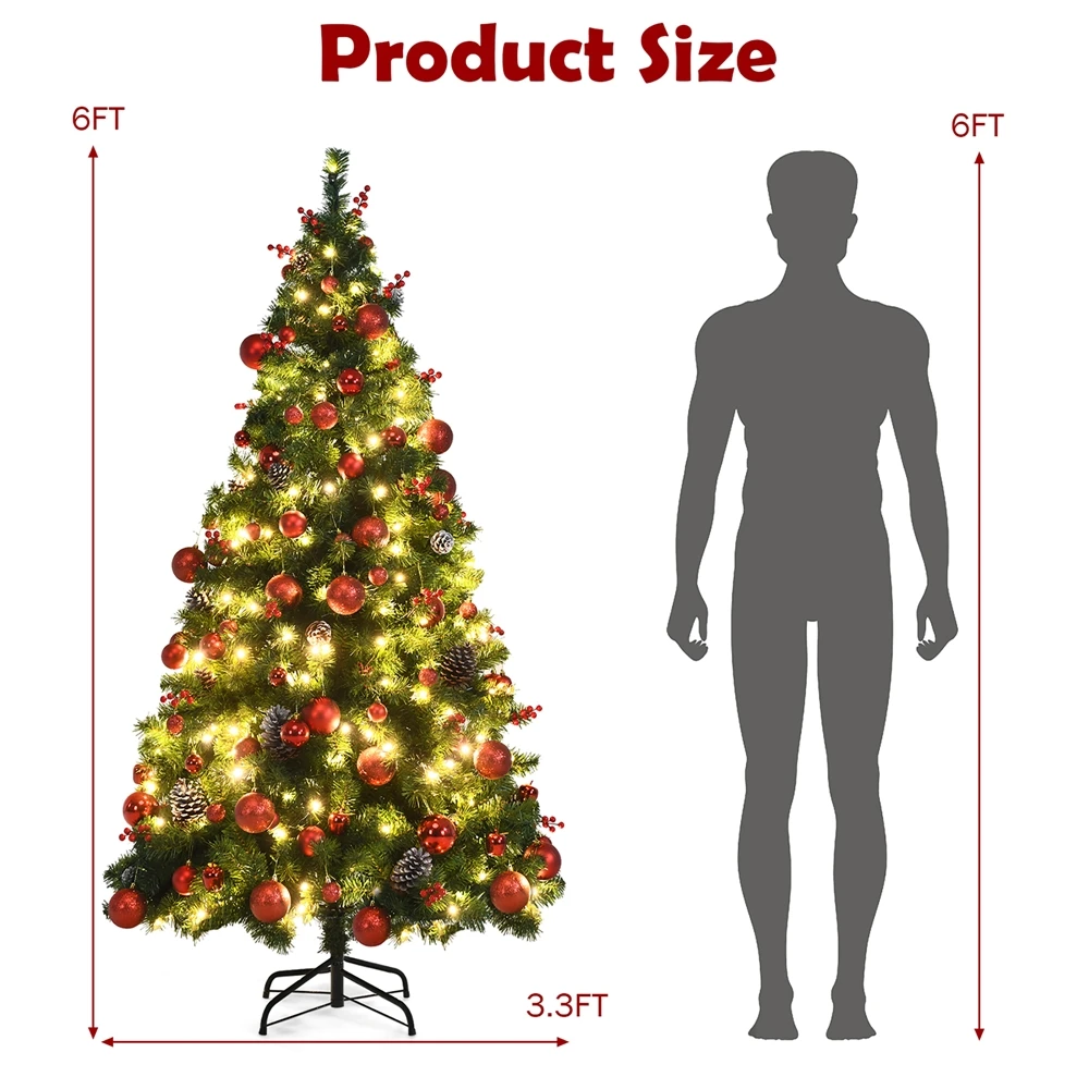 Costway 4.5-ft Pre-Lit Hinged Christmas Tree With Pine Cones Red Berries And 300 LED Lights