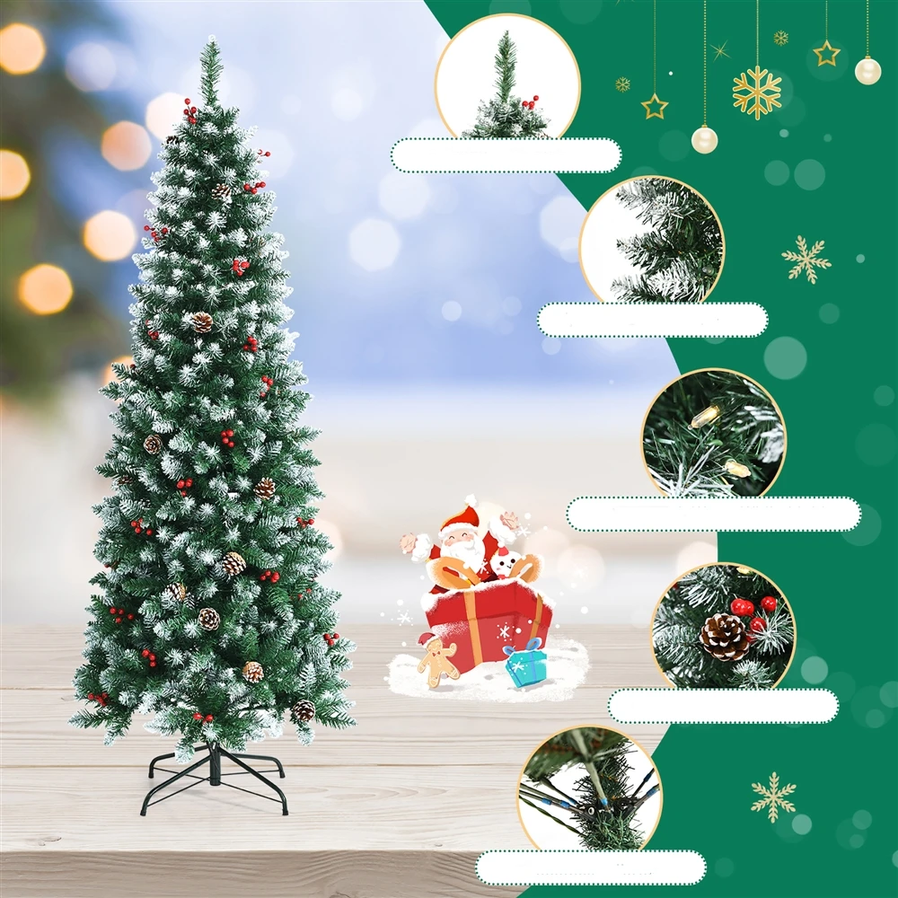 HomCom 6-ft Leg Base Pencil Pine White Artificial Christmas Tree