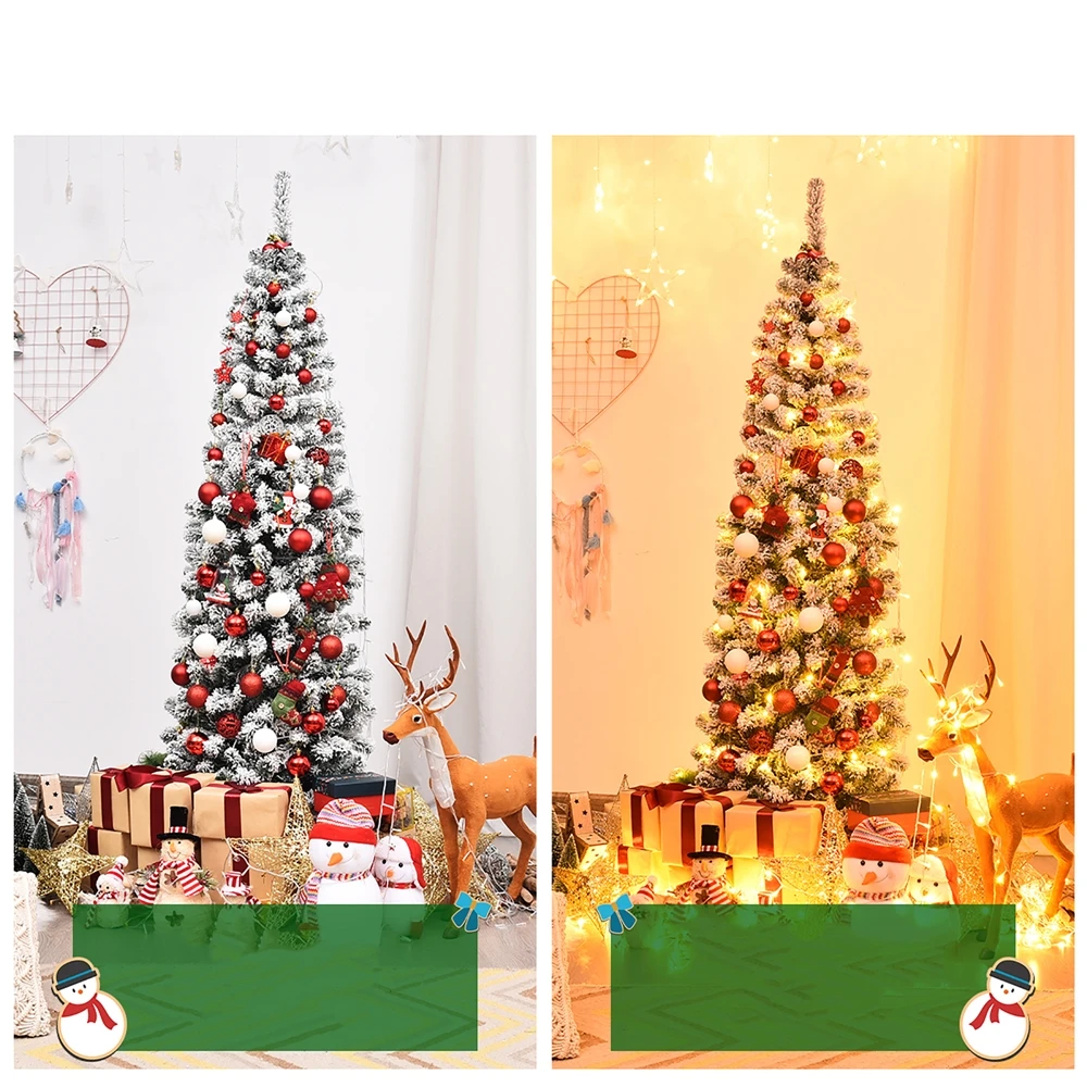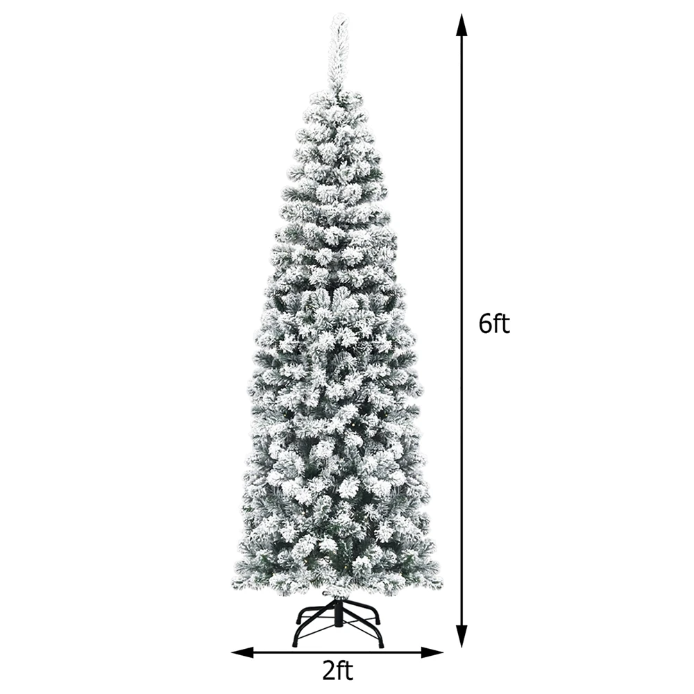 Costway 6-ft Pre-Lit Snow Flocked Artificial Pencil Christmas Pine Tree With 250 LED Lights