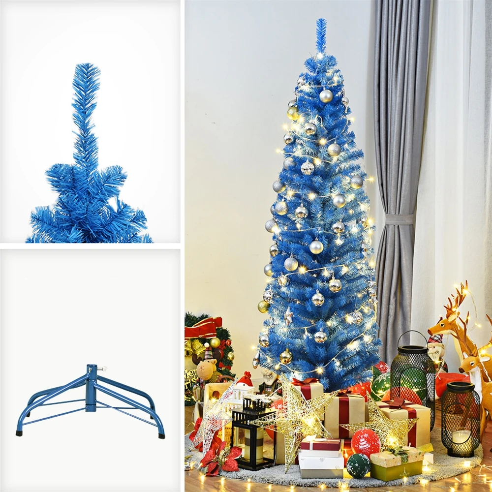 Costway 6-ft Unlit Pencil Slim Tree Artificial Christmas Tree With Metal Stand Home Decor