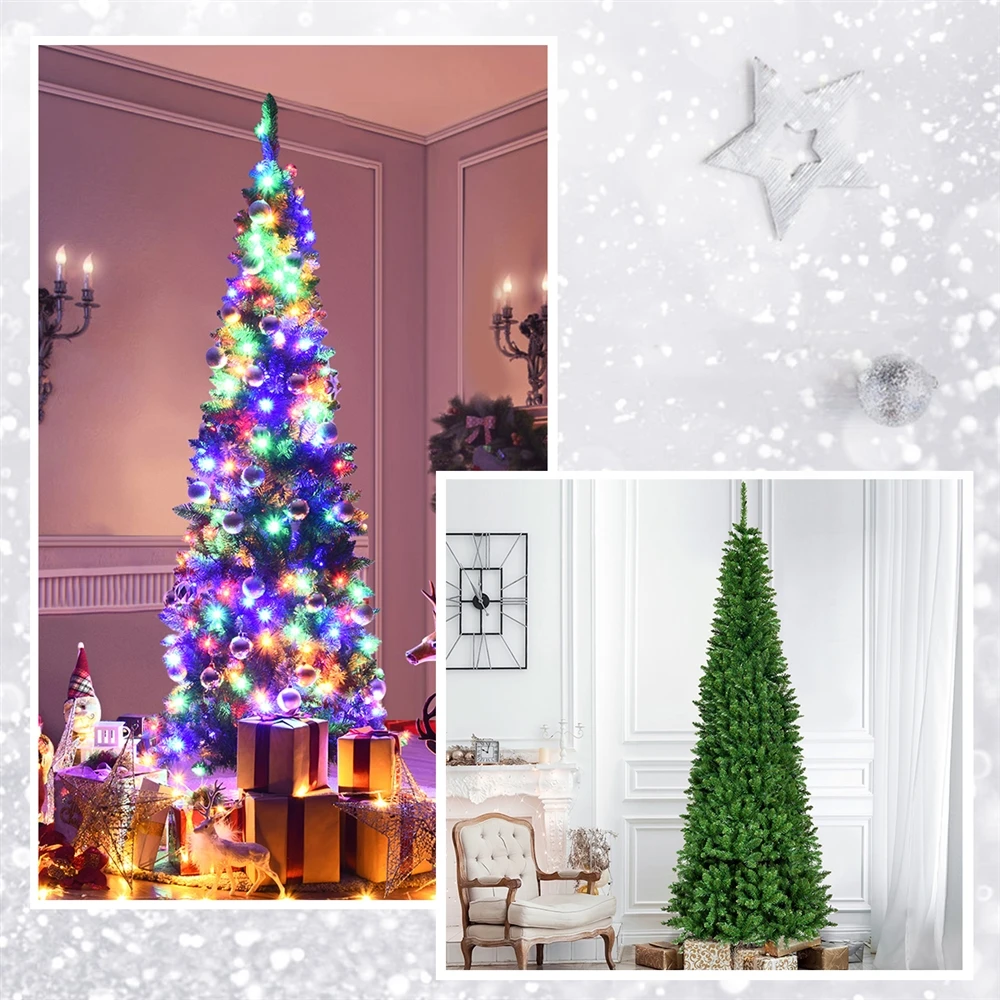 Costway 7.5-ft Pre-Lit Hinged Artificial Pencil Christmas Tree With 350 Multicolour Lights