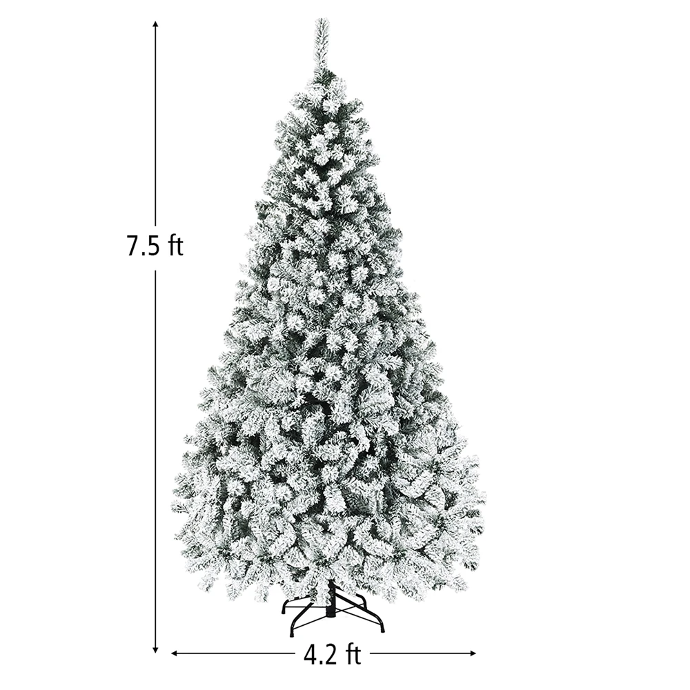 Costway 7.5-ft Pre-Lit Premium Snow Flocked Hinged Artificial Christmas Tree With 450 Light