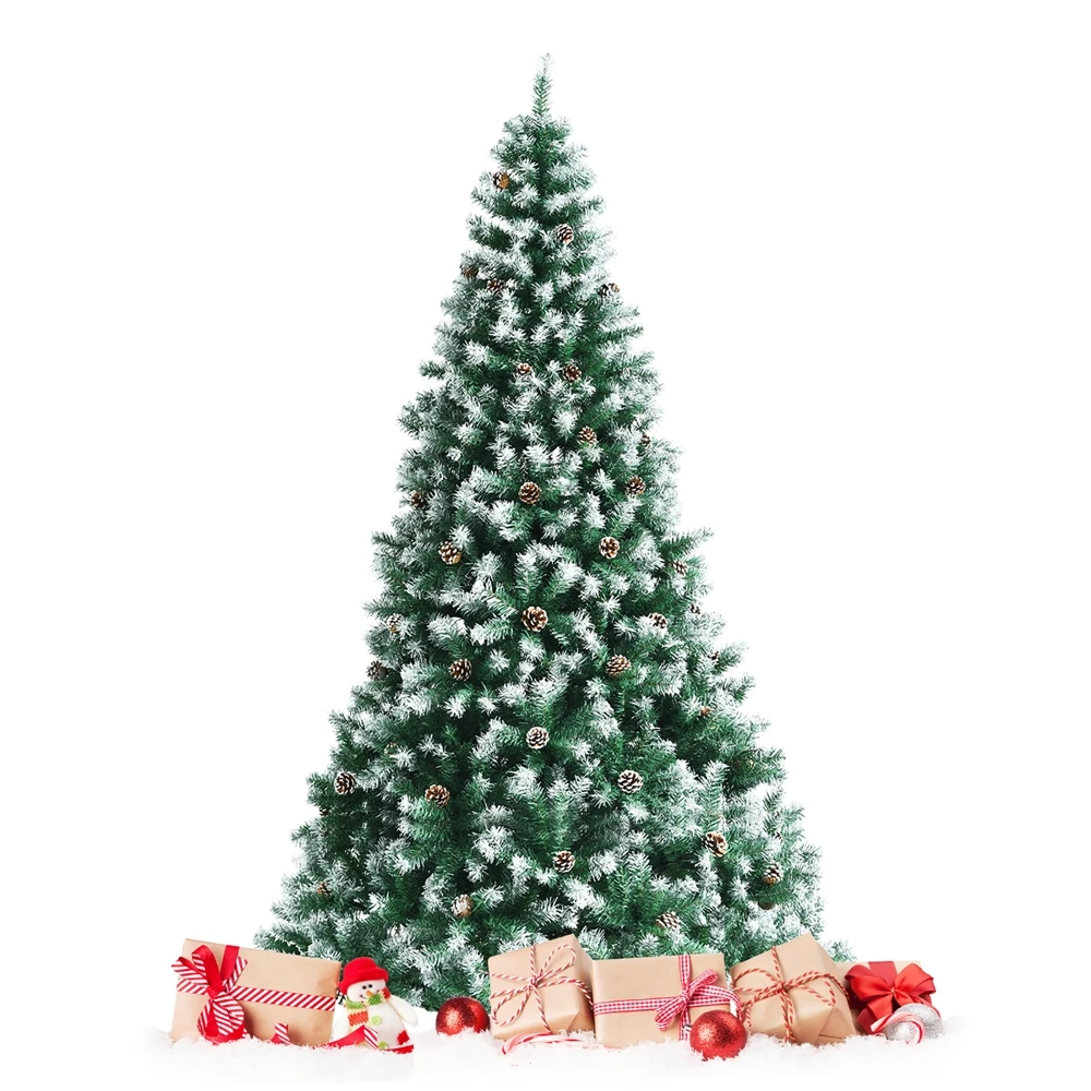 Costway 7.5-ft Snow Flocked Hinged Christmas Tree With 1346 Branch Tips And Pine Cones