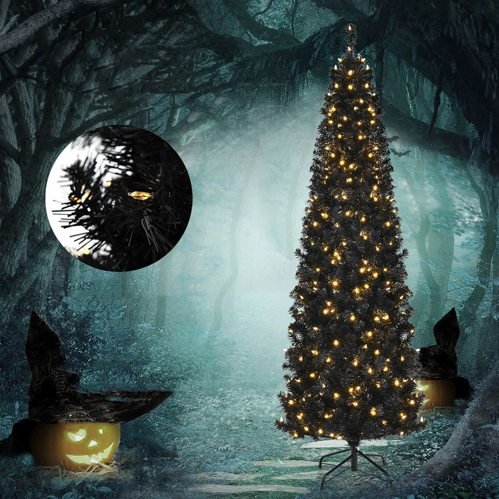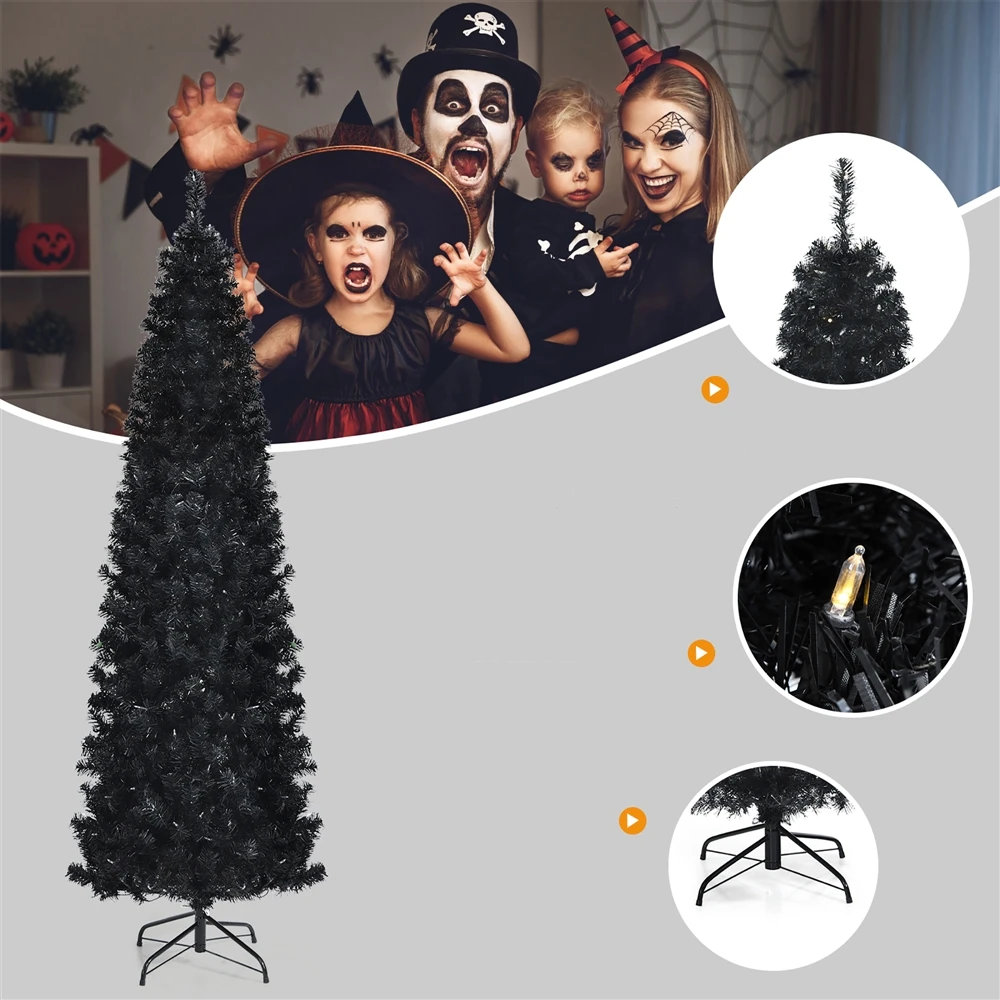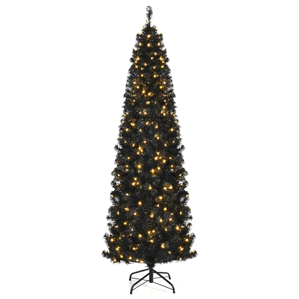 Costway 7-ft Pre-lit Slim Black Artificial Christmas Tree With 350 Warm White LED Lights