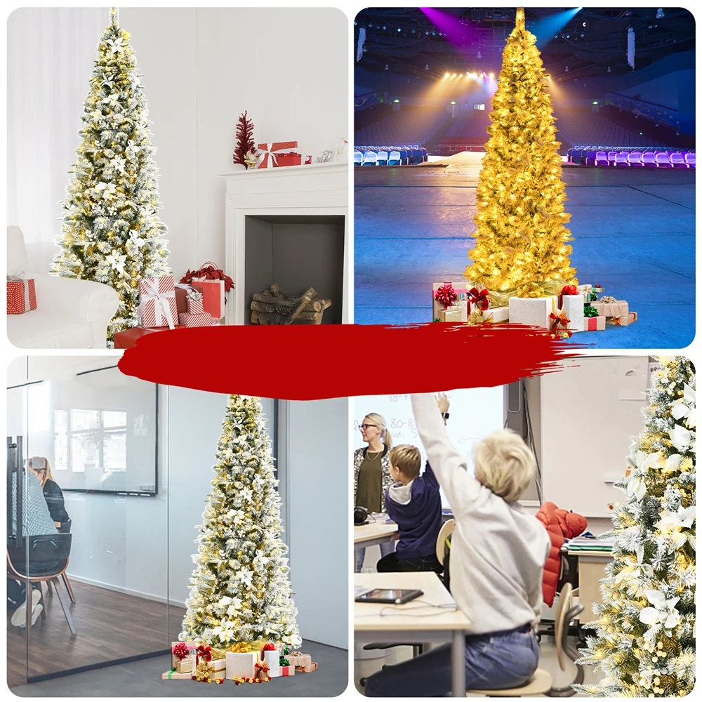 Costway 8-ft Pre-lit Full Flocked White Artificial Christmas Tree With 450 Warm White LED Lights
