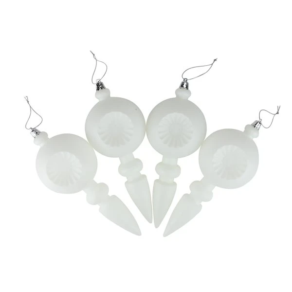 DAK 7.5-in White Retro Reflector Shatterproof Matte Christmas Finial Ornaments – Pack Of 4