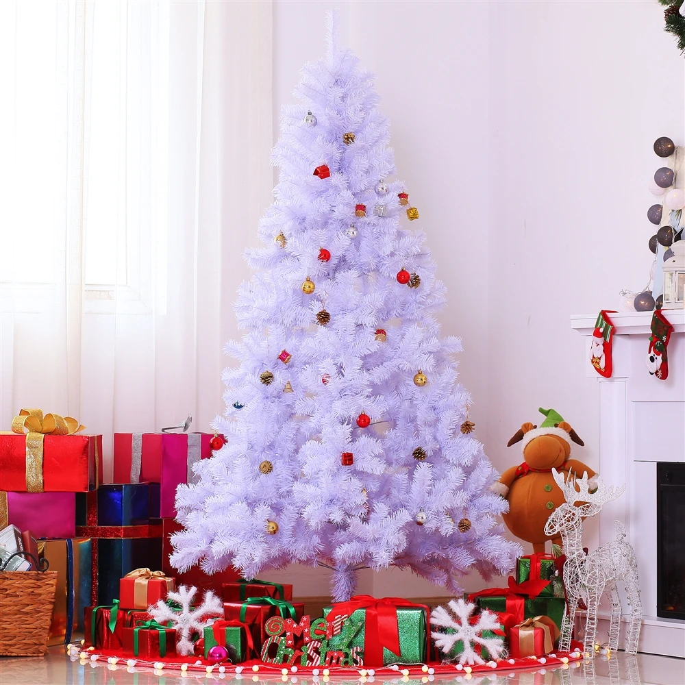 This 5.9-ft artificial white Christmas tree is an excellent piece for your Living room space. With 930 branches, it comes with colourful ornaments such as cones, boxes, bells and drums. This Christmas tree is fireproof and heatproof.