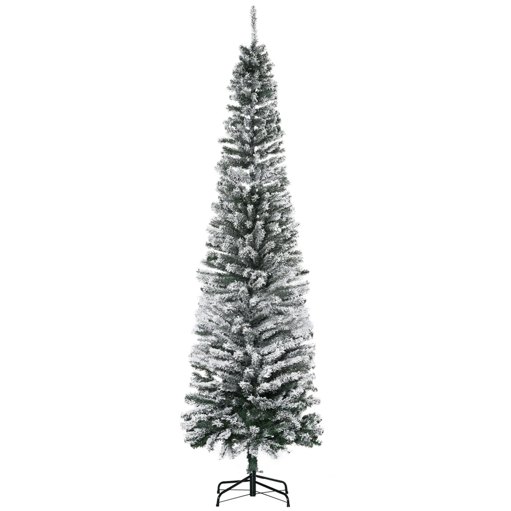HOMCOM 7.5-ft Slim Unlit Pine Snow Flocked Artificial Christmas Hinged Tree