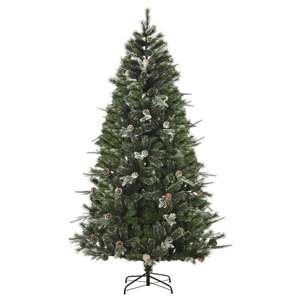 HomCom 7-ft Pine Tree Leg Base Full Rightside-Up Green Artificial Christmas Tree With Pinecones