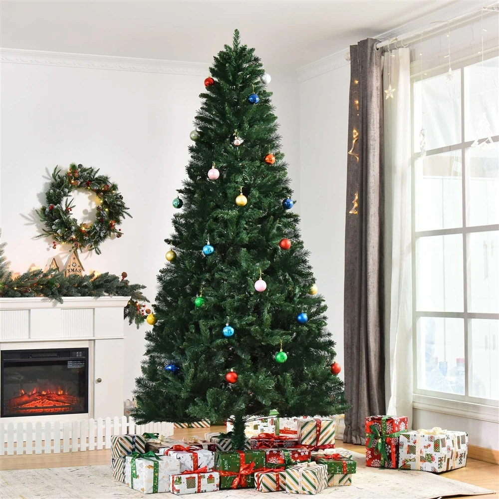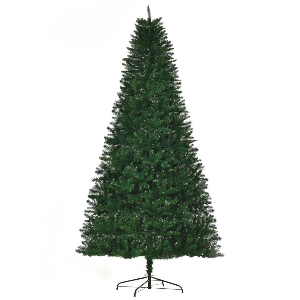 HomCom 8-ft Leg Base Full Rightside-Up Green Artificial Christmas Tree