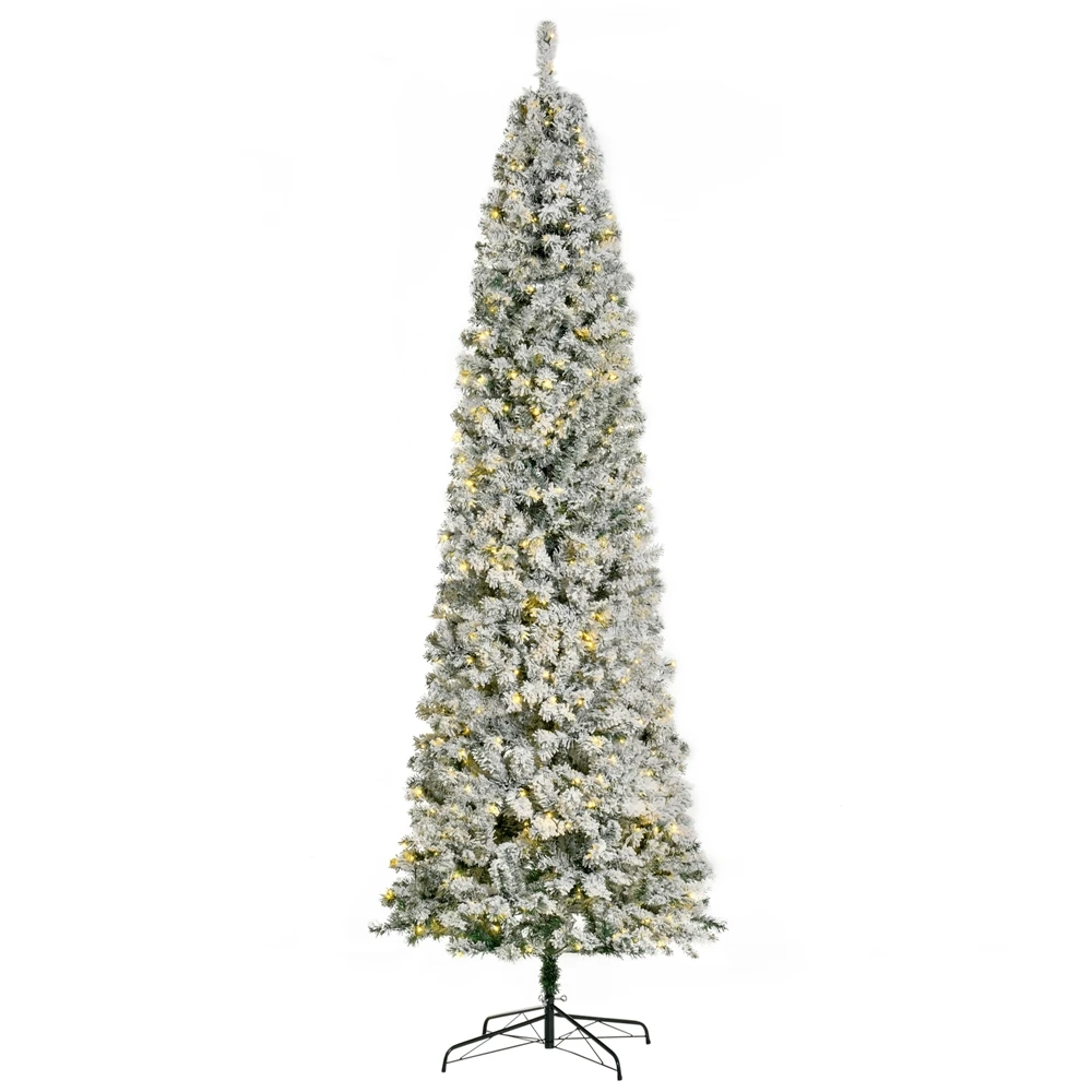 HOMCOM 9-ft Prelit Snow Flocked Christmas Tree With Light