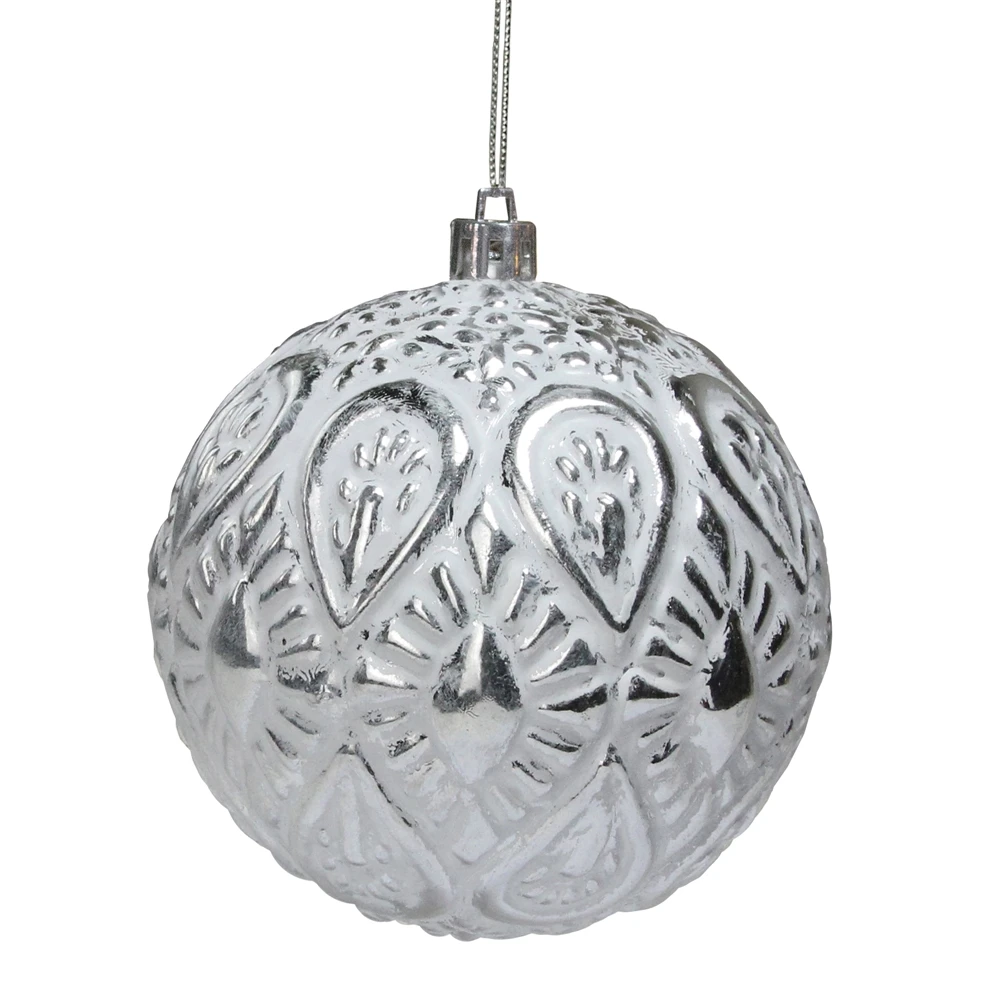 Northlight 3.5-in Matte White And Silver Floral Distressed Christmas Ball Ornament