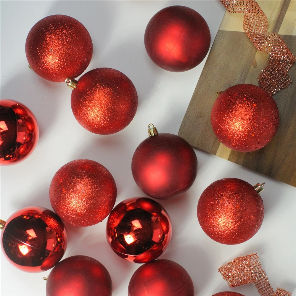 Northlight 32-Piece Red Shatterproof 4-Finish Christmas Ball Ornaments