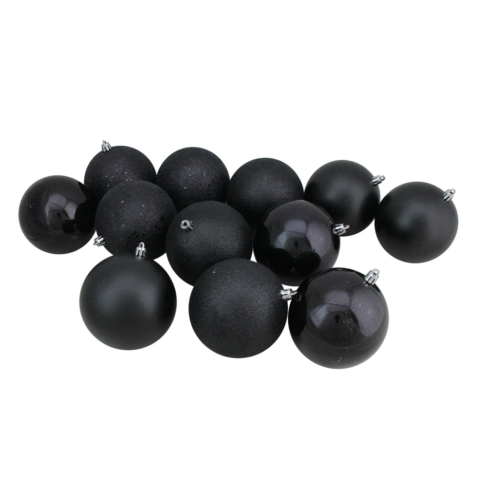 Northlight 4-in Black Shatterproof Christmas Ball Ornaments – Pack Of 12