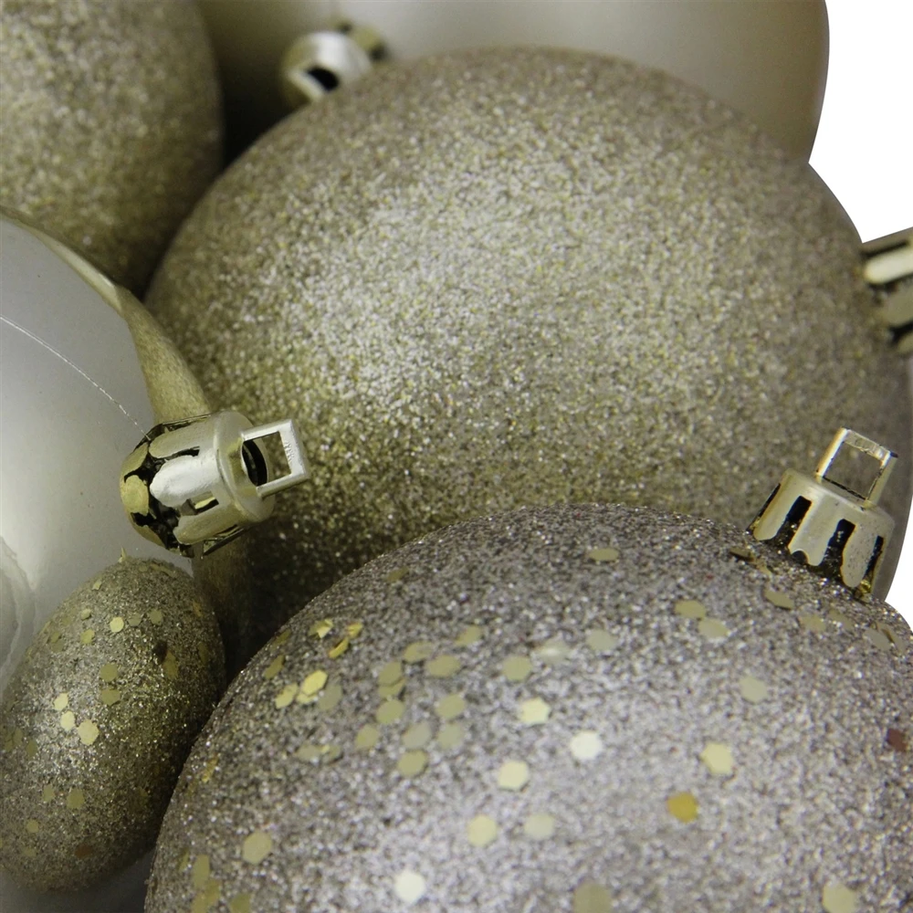 Northlight 4-in Champagne Gold Shatterproof 4-Finish Christmas Ball Ornaments – Set Of 12