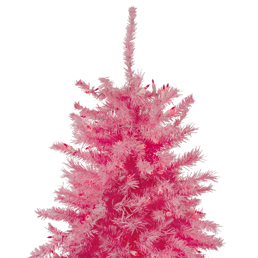 Northlight 7.5-ft Slim Pink Tinsel Pre-Lit Artificial Christmas Tree With Pink Lights