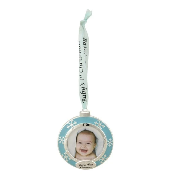 - Babys First Christmas round framed ornament