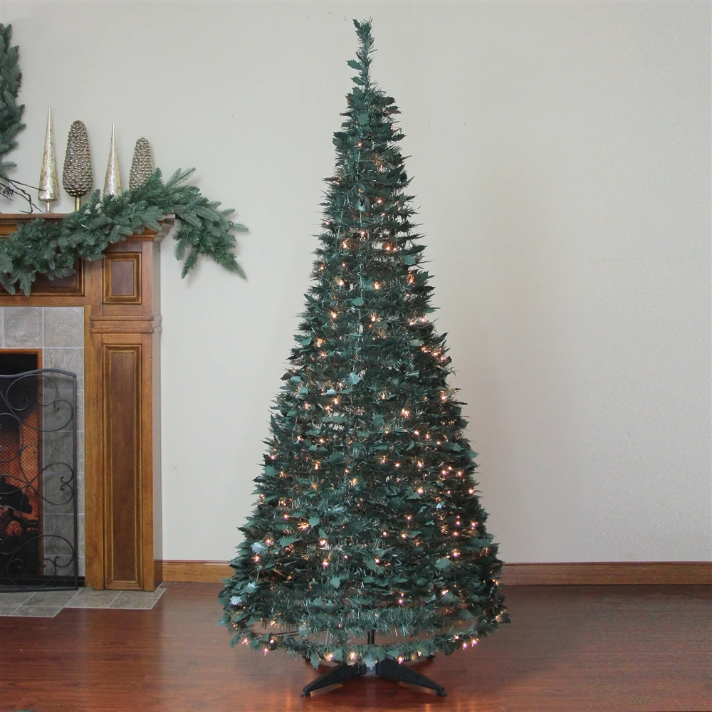 - Prelit slim lights green holly leaf artificial Christmas tree