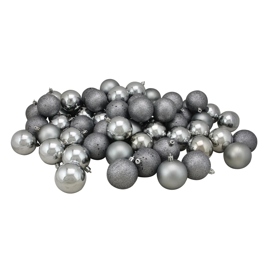 - 60 count gray hanging 4-finish Christmas ball ornaments