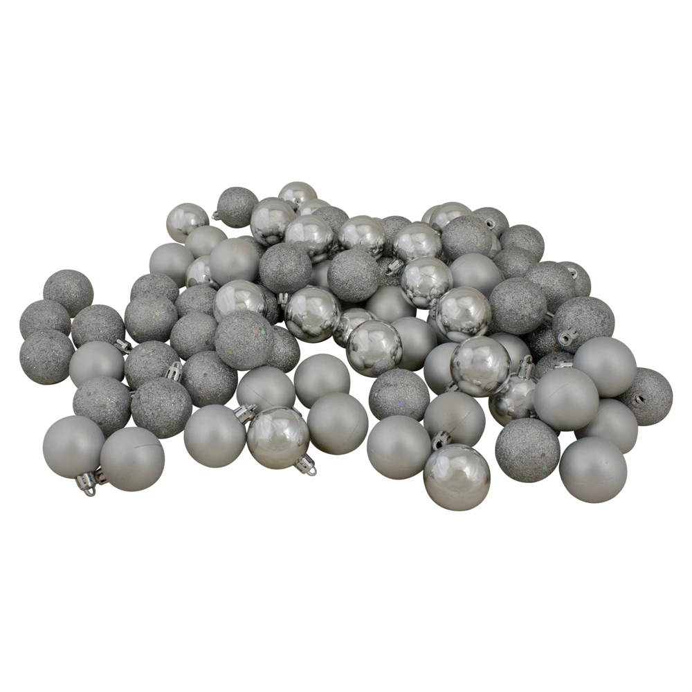 - 96-piece silver splendor shatterproof 4-finish ball ornaments