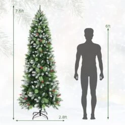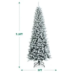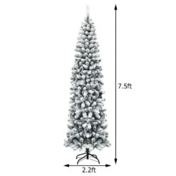 Costway 7.5-ft Unlit Hinged Snow Flocked Artificial Pencil Christmas Tree With 641 Tips