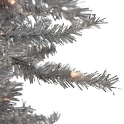 Northlight 7.5-ft Slim Silver Tinsel Pine Pre-Lit Artificial Christmas Tree With Warm White Lights