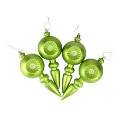 DAK 7.5-in Green Retro Reflector Shatterproof Matte Christmas Finial Ornaments – Set Of 4